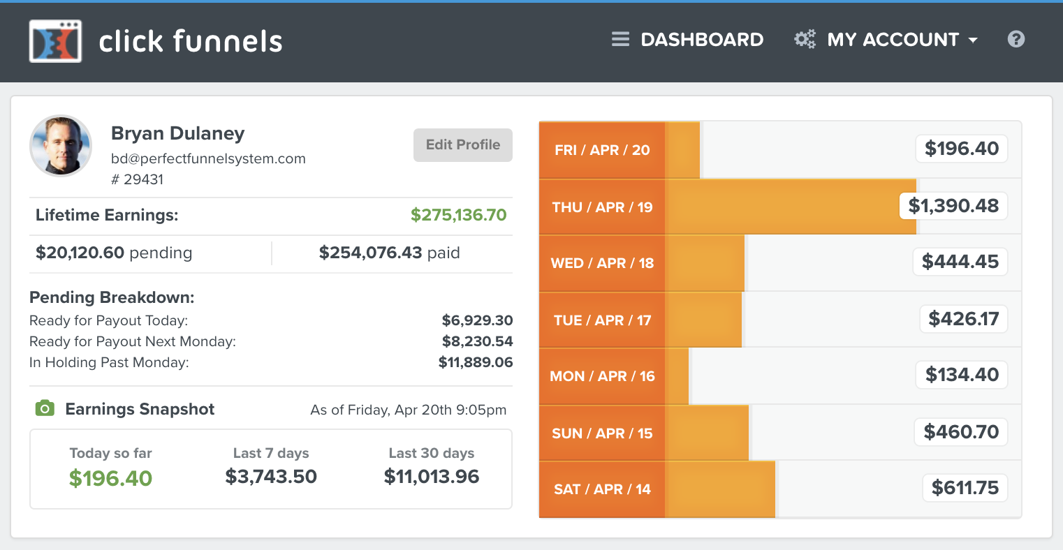 Top 10 Affiliates of over 60,000 ClickFunnels members, because of the system we use for getting clients.